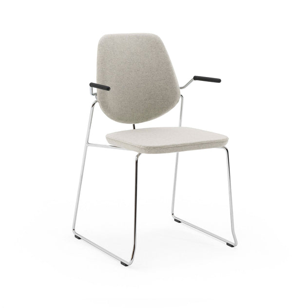 Det solide understellet står stødig på underlaget og kan leveres med sammenkoblingsmulighet, noe som gjør SID godt egnet i miljøer der fleksibel møblering er viktig. Meieunderstellet gir i tillegg en lyddempende effekt når stolen flyttes over gulvet, sammenlignet med frittstående ben – en klar fordel i restauranter, spiseområder og møterom.