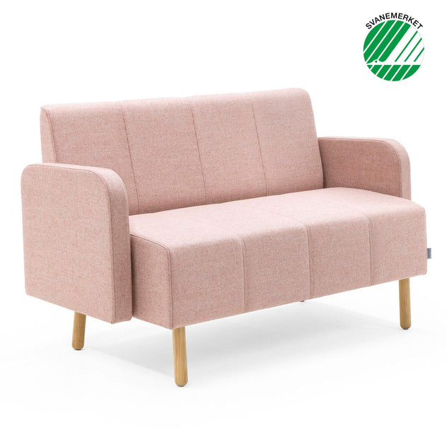 Timeout er også utviklet med tanke på praktisk drift. Den åpne konstruksjonen med smulespalte mellom sete, rygg og armlener gjør sofaen enkel å rengjøre og vedlikeholde, noe som er en viktig fordel i miljøer med høy brukshyppighet.
