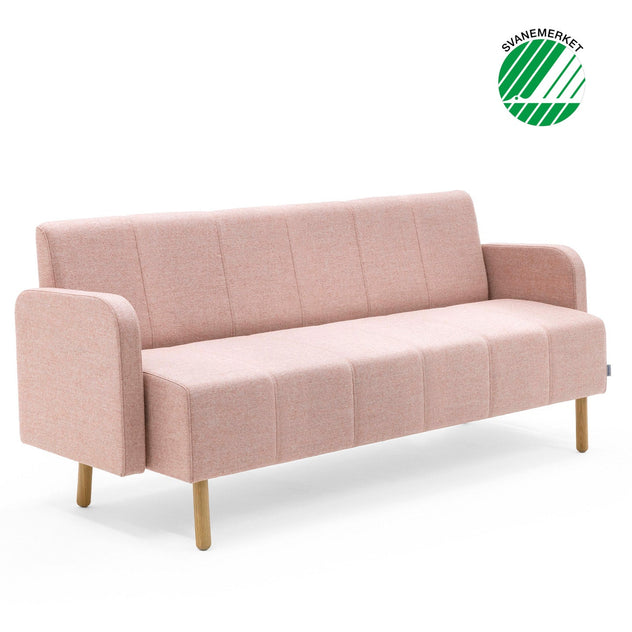 Timeout er også utviklet med tanke på praktisk drift. Den åpne konstruksjonen med smulespalte mellom sete, rygg og armlener gjør sofaen enkel å rengjøre og vedlikeholde, noe som er en viktig fordel i miljøer med høy brukshyppighet.